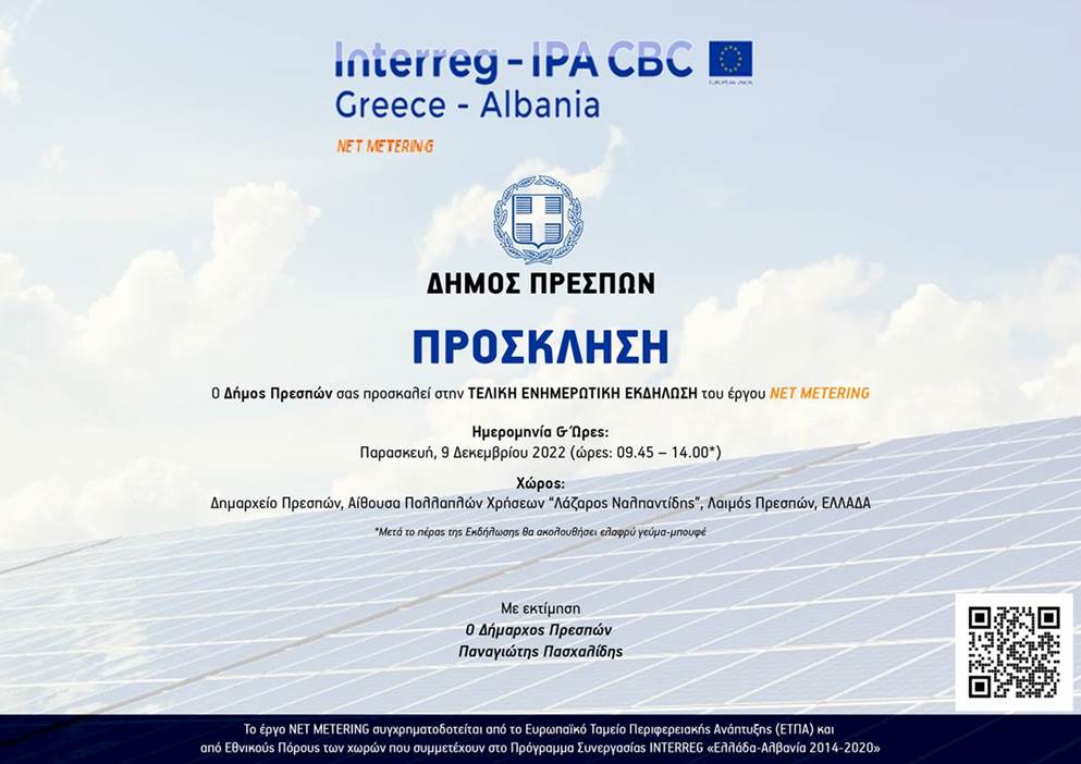 Πρέσπες: Ενεργειακός συμψηφισμός και αποδοτικότητα στο επίκεντρο της τελικής εκδήλωσης του Net-Metering