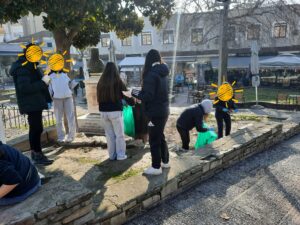 Με τη συνδρομή της Αντιδημάρχου του Τμήματος Καθαριότητας του Δήμου Σερρών κ. Άννας Ιορδανίδου και τη διανομή γαντιών και σακουλών, οι μαθήτριες και μαθητές ανέλαβαν δράση με ενθουσιασμό και υπευθυνότητα.