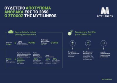 Συγκεκριμένα, σε συνέχεια απόφασης του Διοικητικού Συμβουλίου, η MYTILINEOS δεσμεύεται να ελαχιστοποιήσει το ανθρακικό της αποτύπωμα, φιλοδοξώντας να μειώσει τις συνολικές άμεσες και έμμεσες εκπομπές διοξειδίου του άνθρακα (CO2) κατά τουλάχιστον 30% έως το 2030, σε σχέση με τα επίπεδα του 2019, ενώ μέχρι το 2050 δεσμεύεται να επιτύχει ουδέτερο αποτύπωμα άνθρακα στο σύνολο της επιχειρηματικής της δραστηριότητας.
